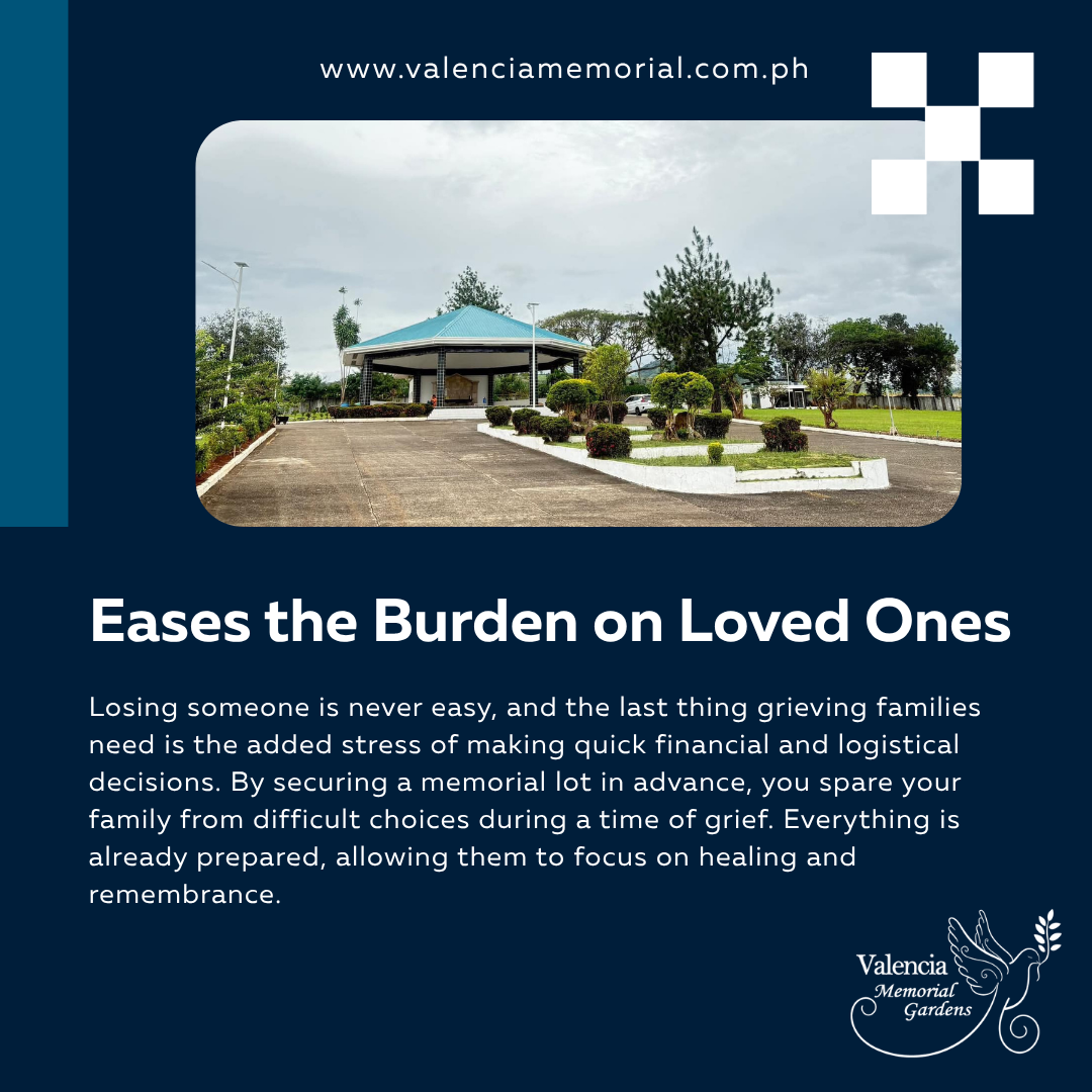 Investing in a memorial lot early is not just a practical decision—it’s an act of love and foresight. It ensures that your family is prepared, protected from financial stress, and given the gift of peace during life’s most difficult moments.