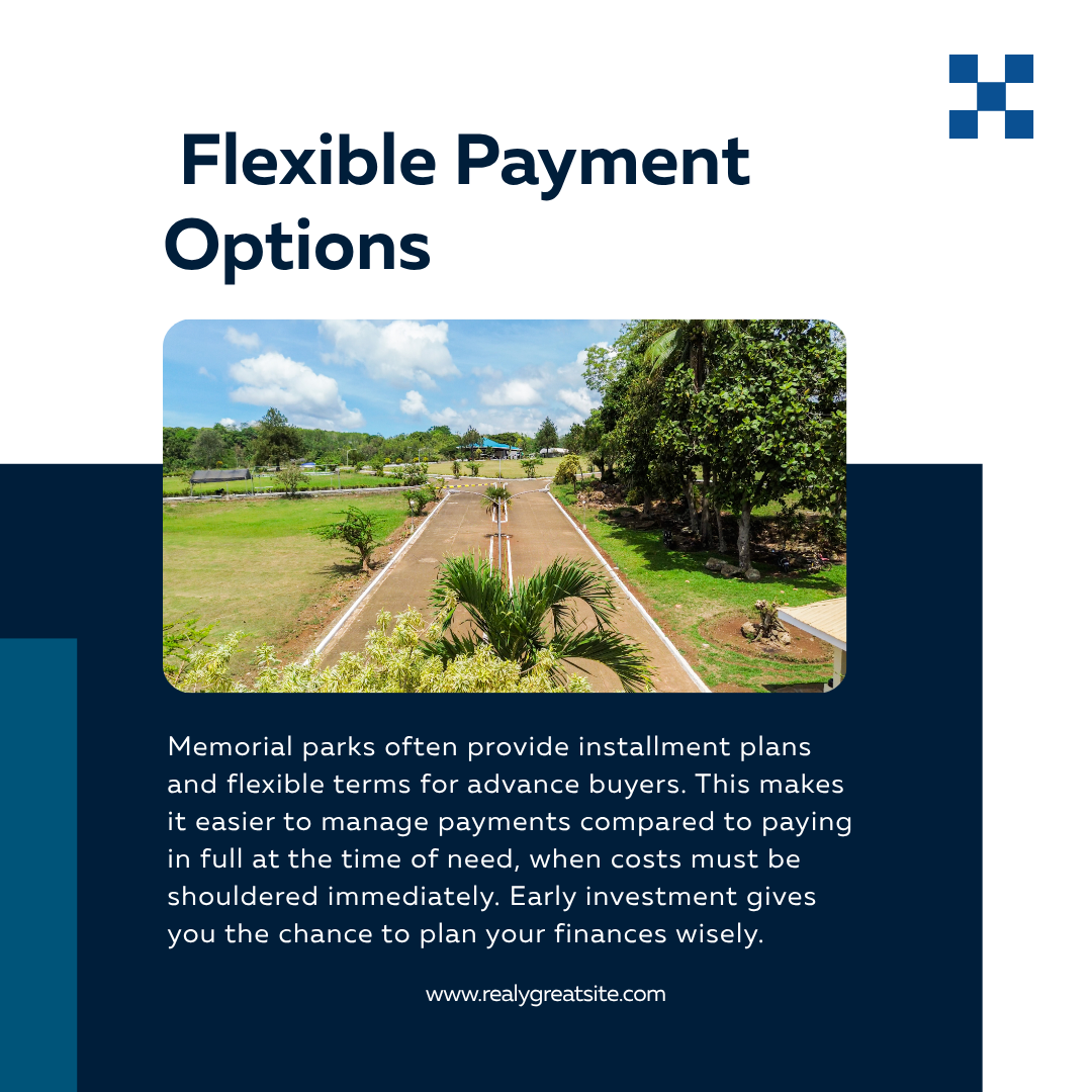 Memorial parks often provide installment plans and flexible terms for advance buyers. This makes it easier to manage payments compared to paying in full at the time of need, when costs must be shouldered immediately. Early investment gives you the chance to plan your finances wisely.